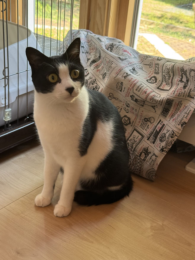 ハチはな部屋とルパン部屋を分けているソファの上に鎮座するハチ。