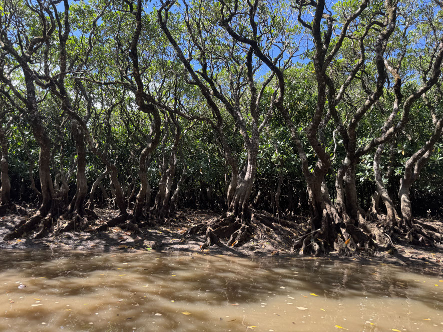 このあたりはちょっと川が濁っていましたが、海水が流れ込んでいて、その海水を木の根っこで濾過しているんだそうです。