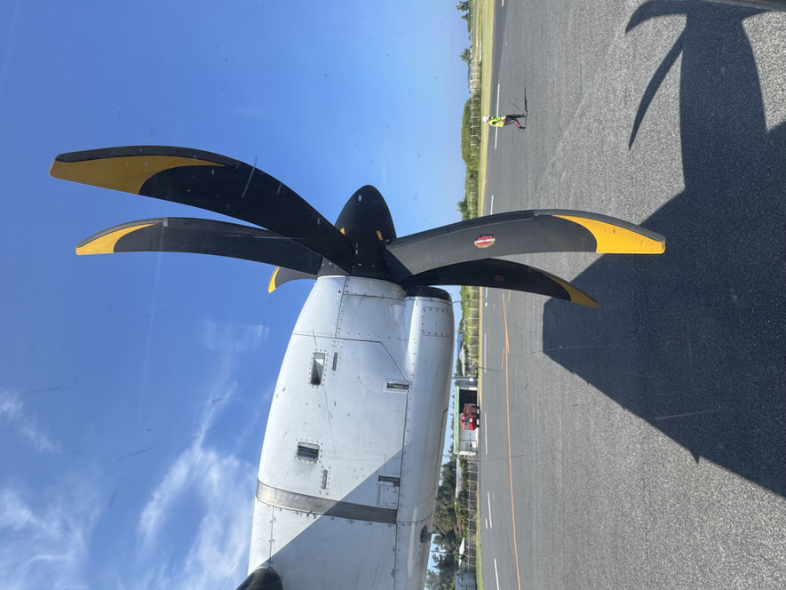 このプロペラ機で20分!いや~近いね!